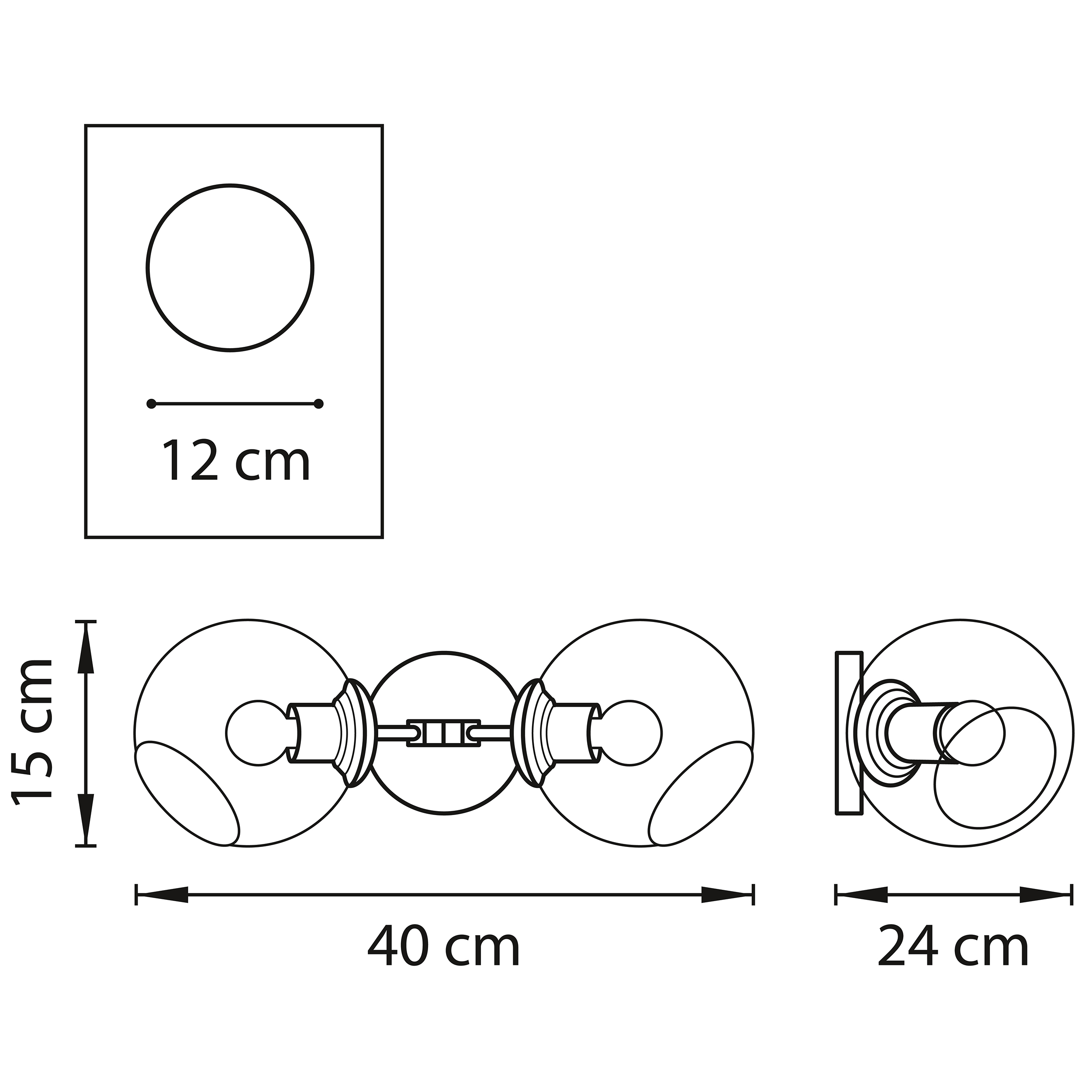 Высота min-max (см): 15; Ширина (см): 40; Глубина (см): 24; Вес (кг): 0,9; Кол-во ламп: 2xE27; Мощность max (W): 40; Цвет основания/цвет стекла или абажура: White;
