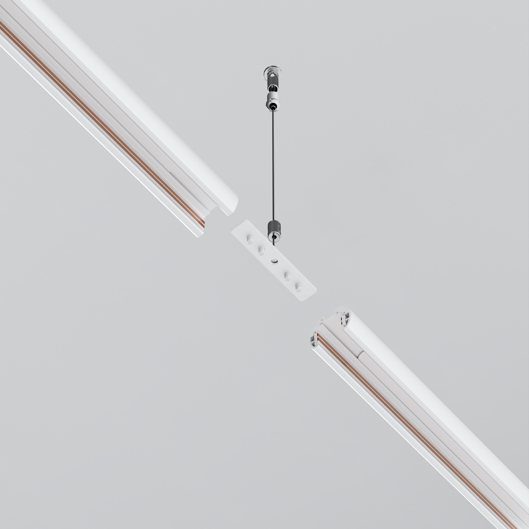 Комплектующие для низковольтной магнитной трековой системы Exility в черном и белом цветах. Разнообразие аксессуаров позволяет собрать свою уникальную конструкцию для накладного монтажа, подвесного, встраиваемого под гипсокартон и встраиваемого в натяжные потолки.
